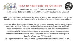 Fit für den Notfall – Anmeldung von redakteur-tsv | Okt. 5, 2025 ‹ zurück Fit für den Notfall – Anmeldung